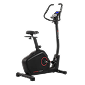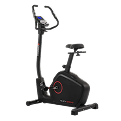 Sitz und Lenker lassen sich gut anpassen, das 35 kg schwere Gerät steht stabil. Mit unter 50 dB ist es flüsterleise. Das magnetische Widerstandssystem bietet stufenlose Anpassung von 10-350 Watt (5-Watt-Schritte), die 8 kg Schwungmasse sorgt für gleichmäßigen Rundlauf. Der tiefe Einstieg und 7 cm dicke Komfort-Sattel eignen sich für längere Sessions. Handpulssensoren sind wie üblich ungenau, Brustgurt-Empfänger integriert.